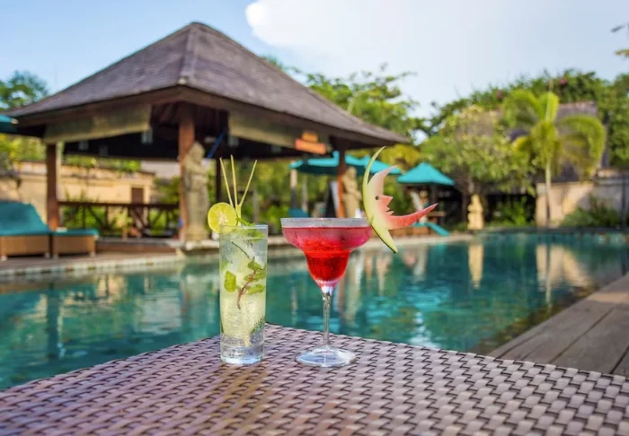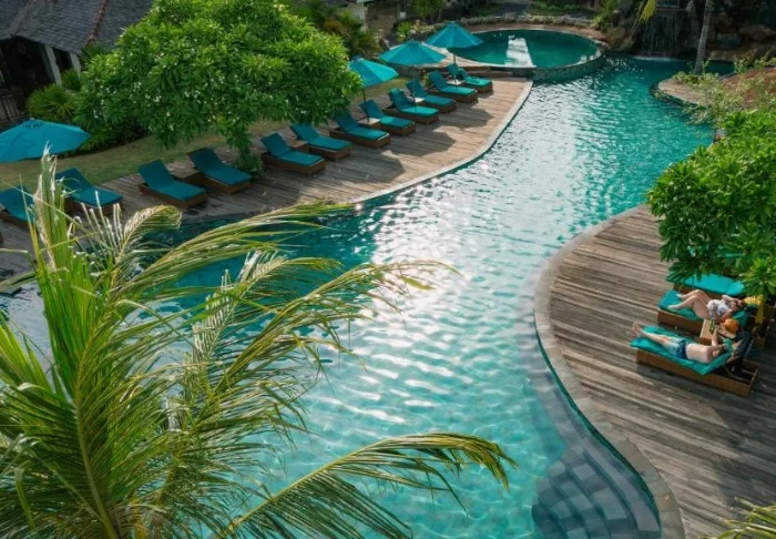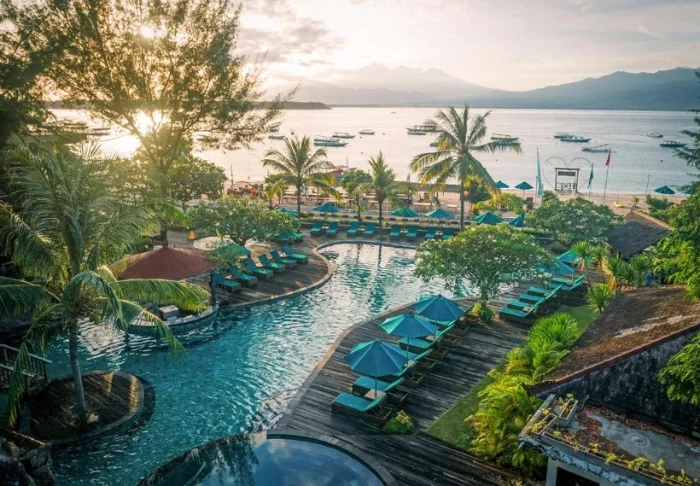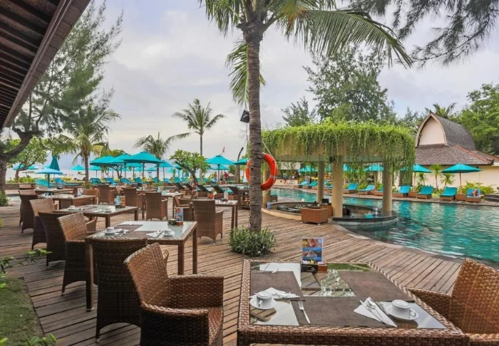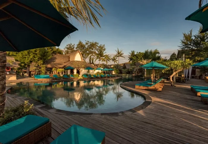 I haven finder du hotellets to dejlige poolområder. Det ene har tilhørende børnepool og ligger med udsigt over den stranden og naboøen Lombok med bjerget Rinjani, mens den anden er en voksenpool, der ligger mere tilbagetrukken midt i den tropiske have med palmer og plumeria. Begge poolområder har parasoller, liggestole og ”swim-up bar”, hvor du kan bestille kolde drinks, friskpressede juice og frisk kokosvand serveret i en kokosnød – et absolut must når du er på Gili!