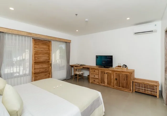 Vila Ombak har i alt 148 rummelige og smagfuldt indrettede værelser med klassiske træmøbler og indonesisk kunst. De er alle udstyret med wi-fi, aircondition, værdiboks, minikøleskab, tv, telefon, gratis vand på flaske samt elkedel, så du hver morgen kan starte dagen med en kop kaffe eller te, der kan nydes på din private balkon eller terrasse. Alle værelser har også eget stort badeværelse med gratis toiletartikler og hårtørrer.