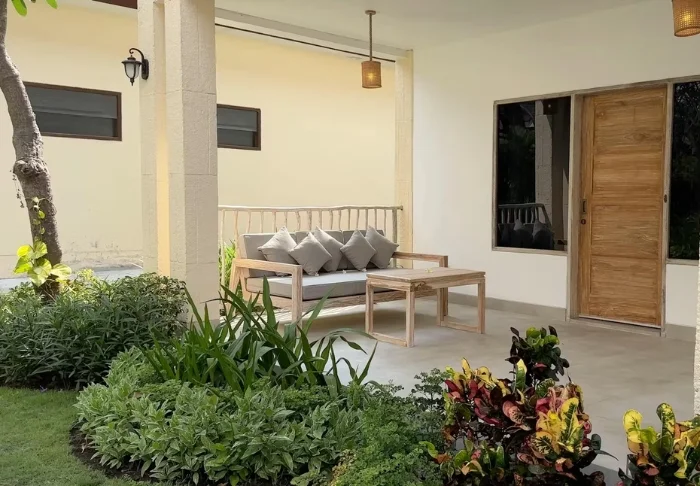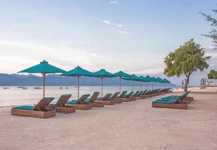 Vila Ombak har en fantastisk beliggenhed ned til den hvide sandstrand på den sydøstlige side af Gili Trawangan. Det ligger tæt på gode restauranter, hyggelige cafeer og barer og blot 8 minutters gang fra hvor du bliver sejlet i land.