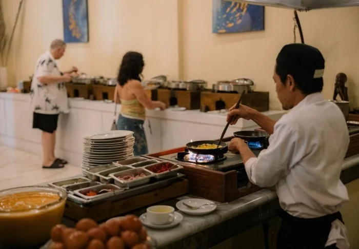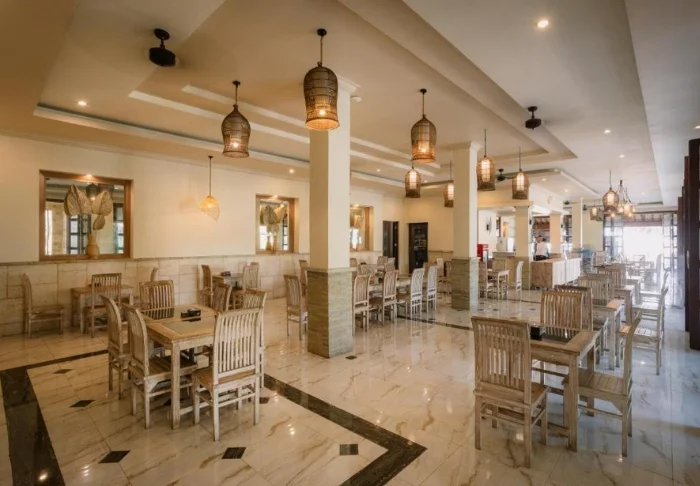 Hotellets hovedrestaurant, Seahorse Restaurant, har åbent fra kl. 8.00 til 23.00. Om morgenen serveres bl.a. frisk frugt, hjemmelavet yoghurt, friskbagt brød, æg og pandekager, mens der til frokost og aften serveres indonesiske og sydeuropæiske specialiteter, fisk og skaldyr samt forskellige grillede retter.