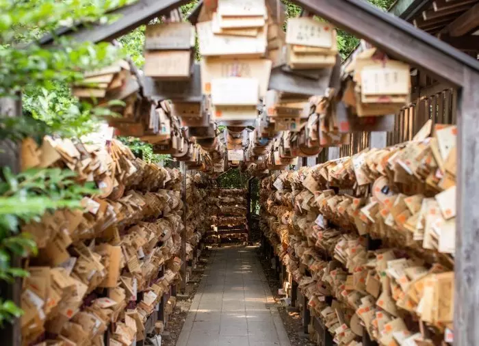 Du besøger også Hikawa- helligdommen, som blev grundlagt i 541. Helligdommen er dedikeret til fem guder, hvor to af dem ovenikøbet var et par. Hikawa er derfor yderst populær blandt unge japanere, kæreste- og ægtefolk, som kommer for at bede for kærlighed, for deres forhold og ægteskab. Gå gennem helligdommens 15 meter høje torii-port og ind gennem korridoren, hvor der hænger små træplader, kaldet ema, hvorpå besøgende har nedskrevet deres ønsker. Om sommeren kan du lytte til de afslappende vindklokker.
