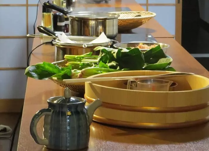 Kurset består at 2 afdelinger. Du starter med at lære at tilberede fonden dashi, som er en grundingrediens i japansk madlavning. Derefter tilbereder du 2- 3 småretter som fx knust agurkesalat med blommesauce, kold shabu shabu-rei shabu med oksekød. Når de er lavet, skal de spises. Så går du i køkkenet igen for at tilberede yderligere 1 til 2 retter, som fx grøn te sorbet. Og de retter skal selvfølgelig også spises.
