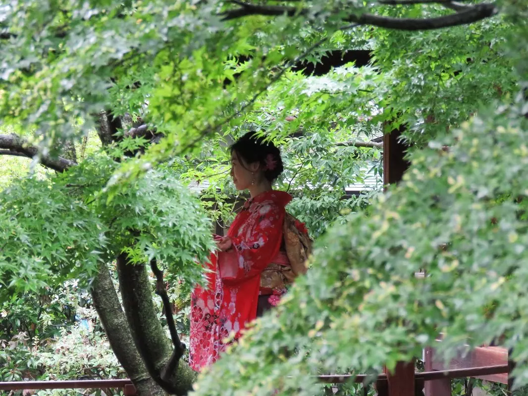 Du kan vælge at trave rundt i gaderne og bare suge til dig. Du vil hurtigt opdage, at der er mange japanske turister i Kyoto, og en af de ting, der er populært at foretage sig, er at blive klædt i traditionel kimono for en dag – det gælder både mænd og kvinder. Det er farverigt at se på, og især de unge mennesker hygger sig tydeligvis med det.