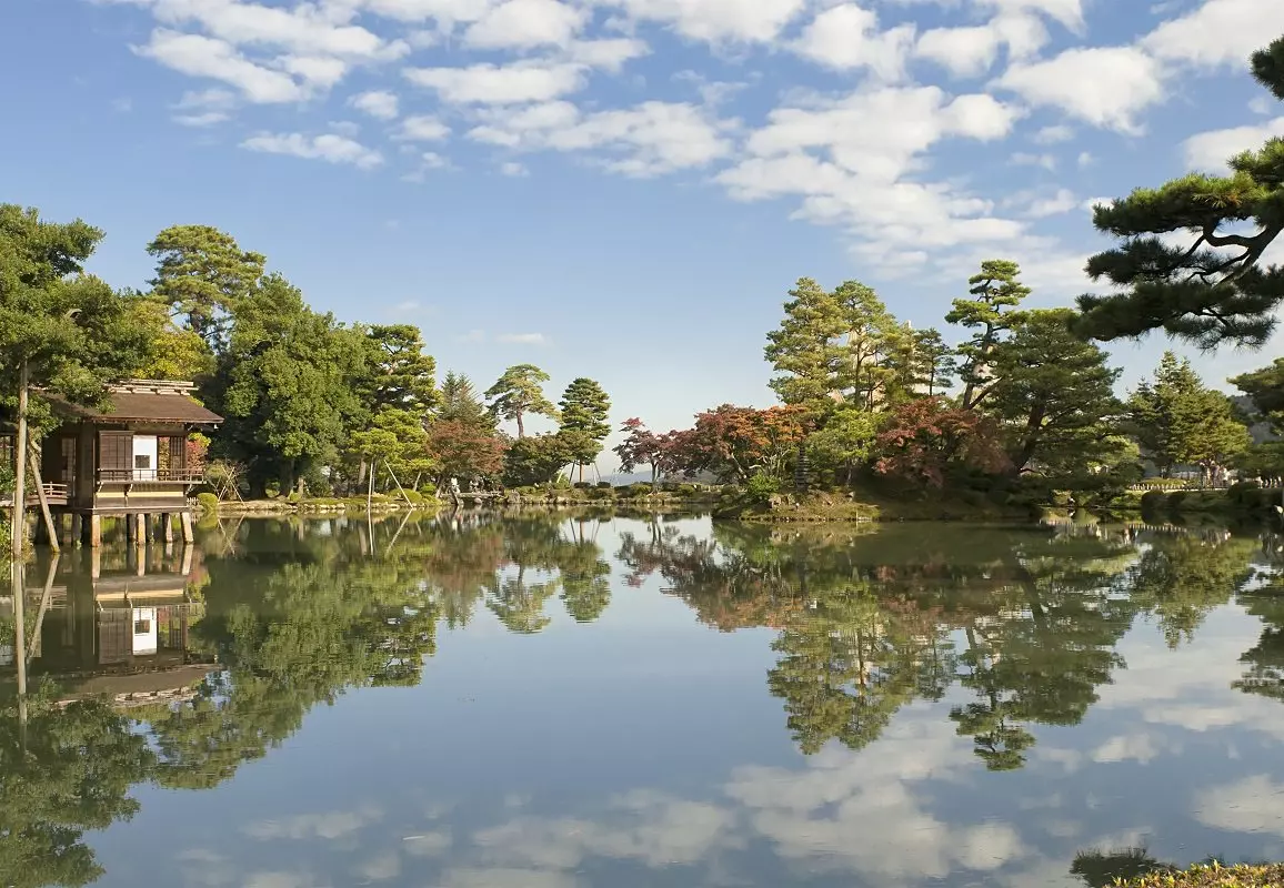 Dernæst går du til den næsten 400 år gamle park, Kenrokuen, der regnes for én af Japans tre smukkeste parker. Den er derfor meget populær. Navnet Kenrokuen henviser til den perfekte æstetiske kombination af rigeligt vand, rummelighed og afsondrethed, som er elementerne, der skaber en smuk japansk have.