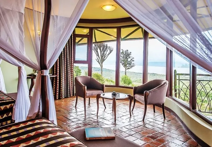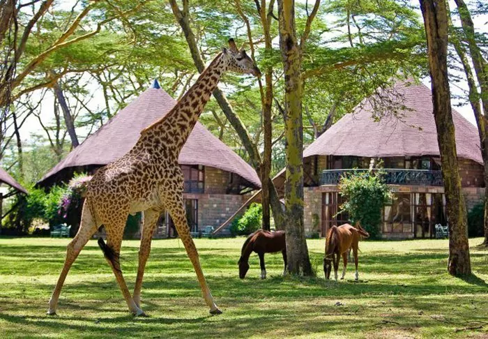 Tæt på Naivasha-søen finder man denne gode turistklasse lodge.