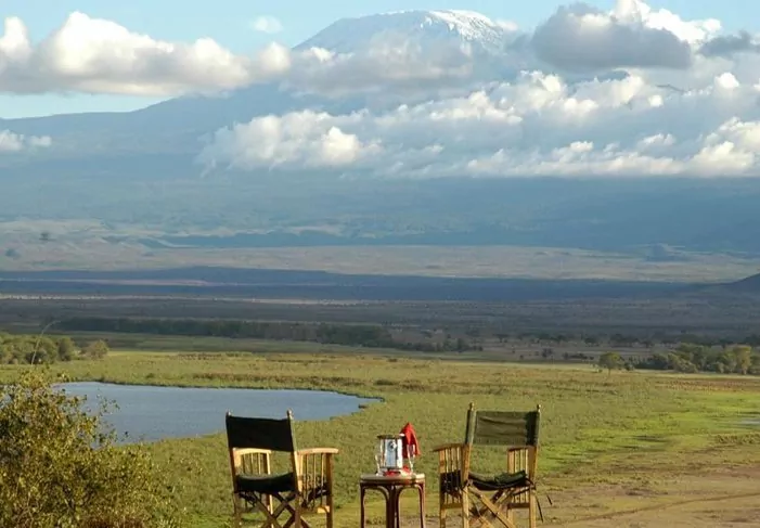 Denne charmerende lodge ligger i Amboseli Nationalpark ved foden af Kilimanjaro.