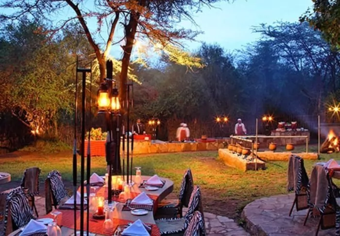 Om aftenen tændes bålet, og du kan nyde udsigten til stjernehimlen, inden en lokal masai følger dig til dit telt for natten. Lejren er nemlig ikke hegnet ind, så når du går rundt om aftenen, bliver du altid ledsaget af en masai – helt klassisk safari-stil!