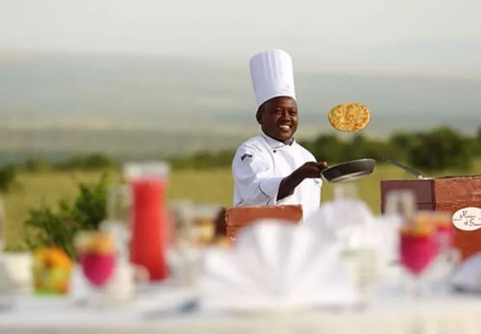 Siddende dér – i den bløde stol med en god kop kaffe i hånden – overvejer du et kort sekund, hvorfor i alverden du overhovedet skal på game-drive i dag. Det hele ligger jo lige foran dig. Du har fri udsigt til Masais Mara’s sletter på den anden side af floden, og med jævne mellemrum er der en tjener, som spørger dig, om du mangler noget.