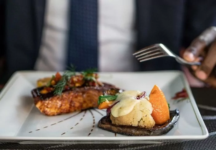 Måltiderne indtages i hovedbygningen, hvor du også finder receptionen samt den hyggelig bar. På udvalgte aftner er der endda til tider live musik i baren. Foran restauranten ligger en stor græsplæne med bænk og hyggekroge, hvorfra er udsigt til vandhullet og midtvejs mellem restaurant og teltene finder du poolen med solsenge omkring.