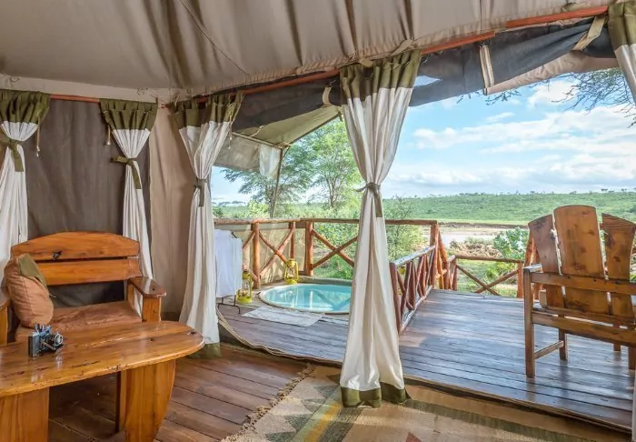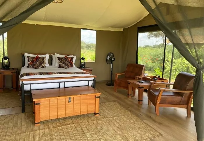 Her er 29 telte som er rummelige og godt indrettet. Her er ikke en masse dikkedarer men der er alligevel tænkt på alt. Alle telte har egen veranda – nogle af dem endda med egen plungepool og der er udsigt til Kilimanjaro fra alle teltene.