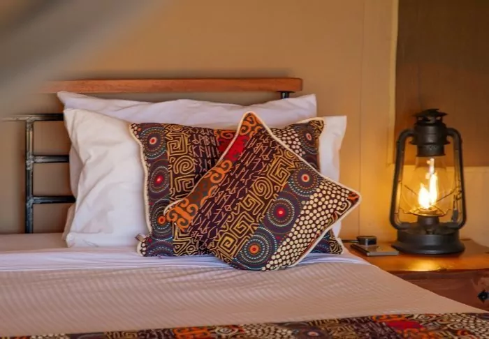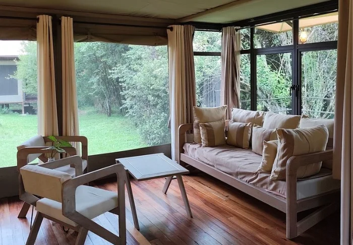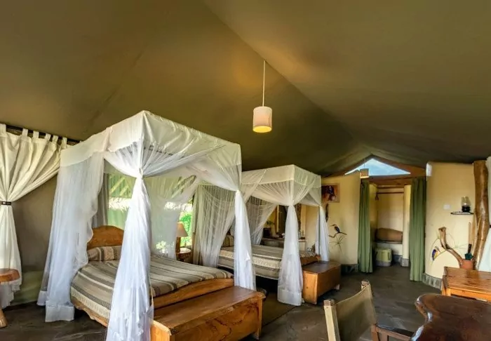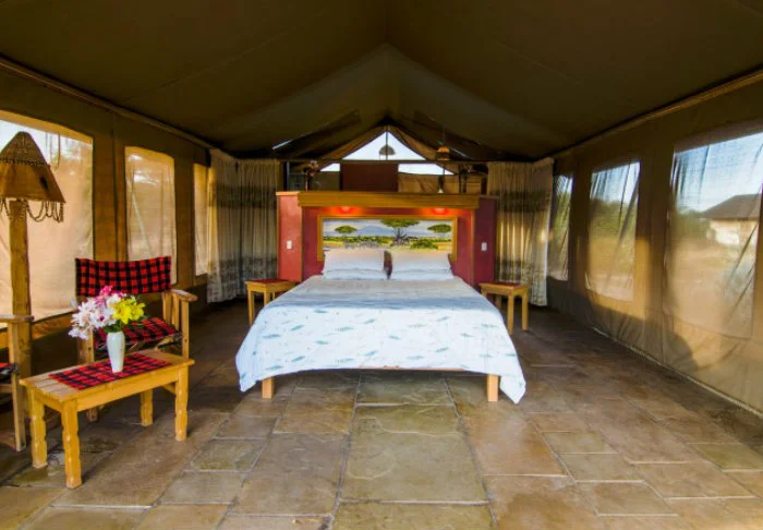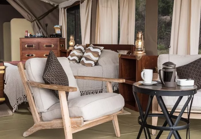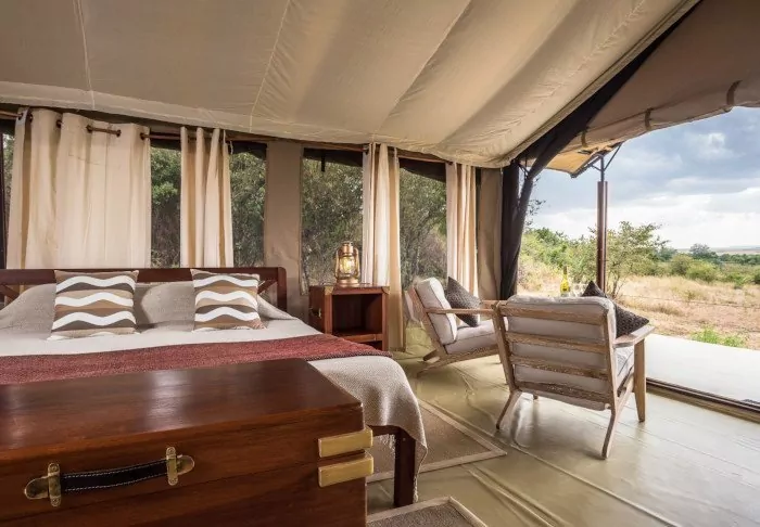 Hele dagen har du været på gamedrive i Masai Mara, men nu sidder du bare og slapper og nyder lydene af bushen. Dit telt er indrettet som et klassisk safaritelt, men på den luksuriøse måde. Her er kanvasvægge men bløde senge med myggenet omkring og eget badeværelse med varmt vand. Måske blunder du lidt i stolen. Om natten kan man nemlig tydeligt høre alle dyrelydene gennem kanvas-væggen, så du var vågen et par gange i løbet af natten. Men hvem vil ikke gerne vågne ved, at løverne brøler i det fjerne?