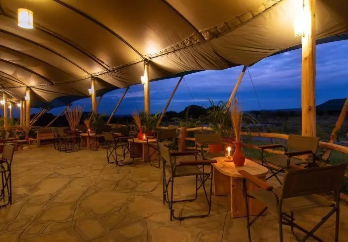 I fællesområderne finder du både spise- og loungetelt, som er hyggeligt indrettet bløde lænestole og tæpper og puder i masaiernes smukke farver. Der er to udendørs bålområder, hvorfra solnedgangen kan nydes med en kølig drink i hånden.