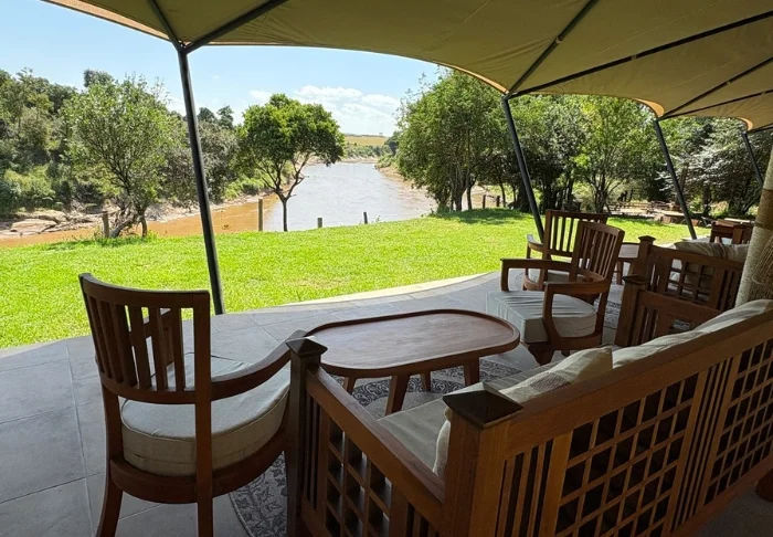 Forestil dig, at du sidder i en liggestol på din egen store træterrasse udenfor dit telt i Masai Mara. Du kan høre flodhestene slås nede i Mara-floden – den flod, som hvert år er centrum for den store vandring og som denne camp ligger lige ned til.