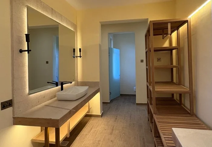 Der er i alt 84 værelser fordelt på 21 hytter med farverige stenvægge både udefra og indefra. Alle værelserne har panorama vinduer og åbne verandaer.