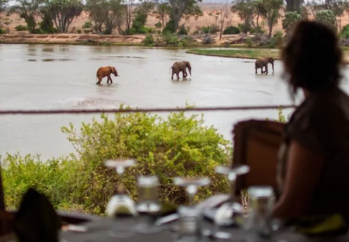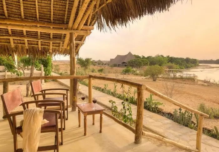 De 18 telte ligger alle med udsigt til Galana-floden, som er Kenyas 2. største flod. Alle telte har egen balkon, så du får den bedst mulige udsigt til floden. Ja, selv fra poolen er der udsigt til floden.