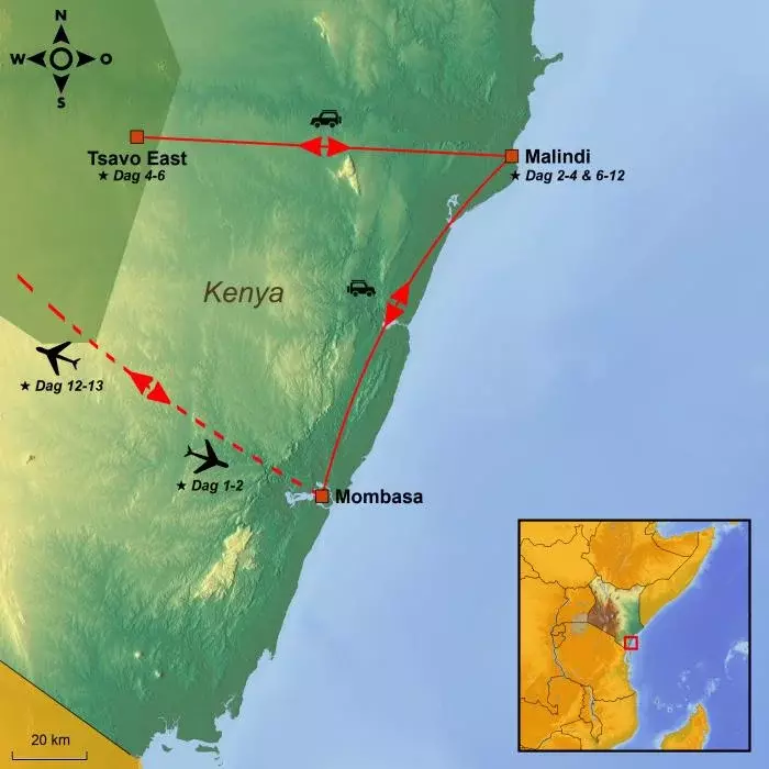 Efter et par dage ved kysten venter en safaritur til smukke Tsavo East Nationalpark. Her bor du to nætter i en lækker safaricamp lige uden for nationalparken og tager på game drives inde i parken. Alle måltider og safariturene er inkluderet i rejsen.