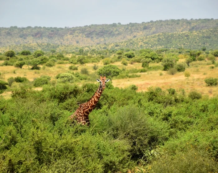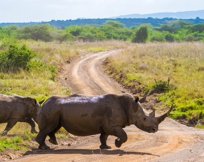 Du runder dagen af med et besøg i Nairobi Nationalpark. Med sine blot 117 km2 er Nairobi Nationalpark en af landets mindste, men det er det eneste sted i verden, du kan tage på safari inde midt i en hovedstad med udsigt til både næsehorn og skyskrabere. Og netop næsehornene er et af de helt store trækplastre her i nationalparken. Vi kan naturligvis ikke love noget, men der er rigtig gode chancer for at se både sorte og hvide næsehorn. Der er også masser af andre dyr – også løver. Det eneste af de klassiske safaridyr, du med garanti ikke ser, er elefanter. Dertil er parken trods alt for lille.