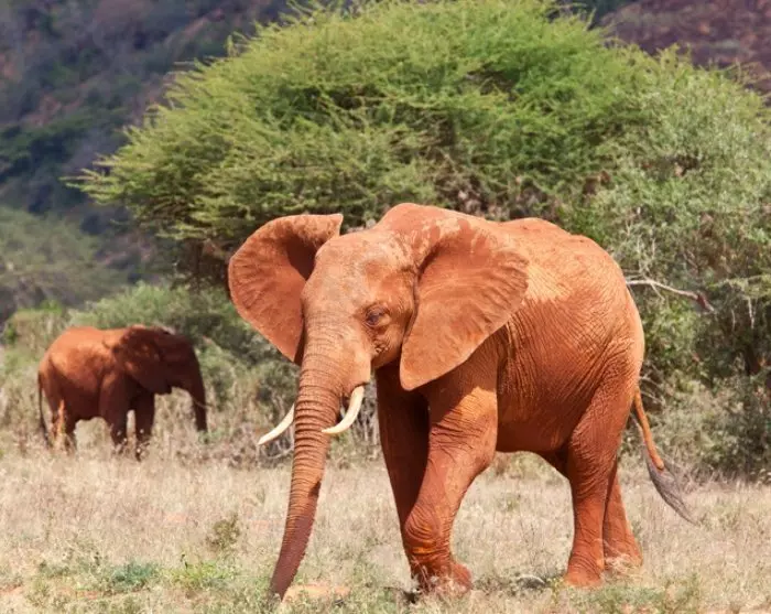 I Tsavo East er jorden knaldrød, hvilket giver dyrene et lidt særpræget rødligt udseende. Det er lidt spøjst, den første gang, man spotter en rødlig elefant! Landskabet er fladt, og det er nemt at spotte dyrene.