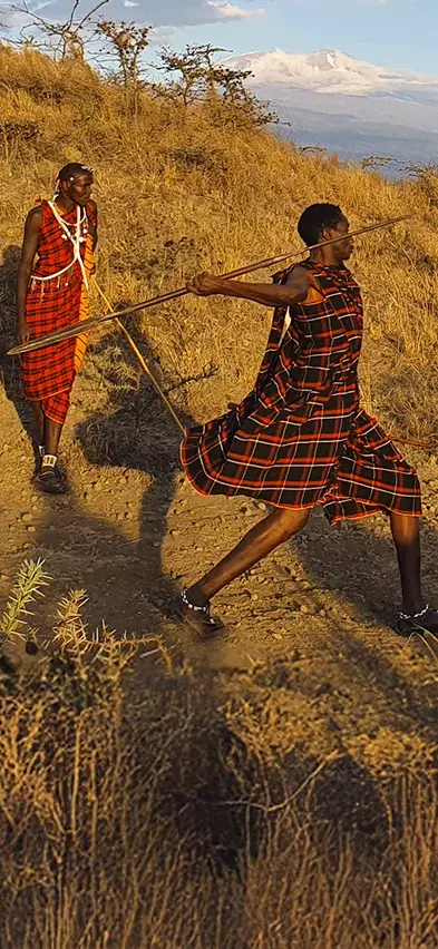 Dagens program afhænger lidt af, hvornår på dagen du ankommer. Måske er der tid til at slappe lidt af – måske kommer du lige i tide til at overvære spydkastningen. I gamle dage dræbte masaierne løver med spyd, hvis deres kvæg var truede. I dag er det dog en træstub, som må lade livet, for som de siger: ”besøgende kommer jo for at se løverne, så vi må gøre, hvad vi kan for at bevare dem”! Masaierne lever på mange måder i pagt med naturen, fordi de er så afhængige af den.