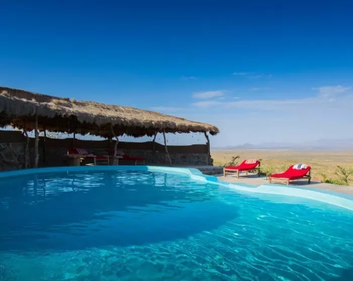 Måske kan du ved solopgang høre masaierne, som begynder at pusle uden for din hytte, og der er sikkert også en hel hær af fugle, som begynder deres morgentrillen. Slå dørene op og lig i sengen, mens du ser solen stå op over Kilimanjaro.