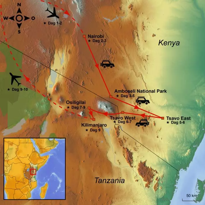 Dette er en rejse, hvor du kommer til at opleve store kontraster i landskaberne og får et indblik i den lokale masai-kultur på en masailodge, hvor nomadefolket byder dig velkommen med sang og dans. Og selvfølgelig vil der også være masser af safari i det østafrikanske, herunder i Amboseli og Tsavo.
