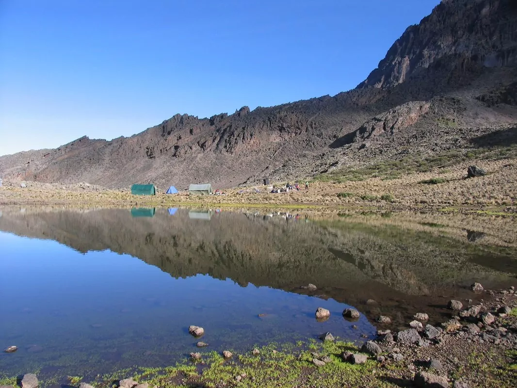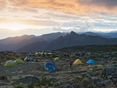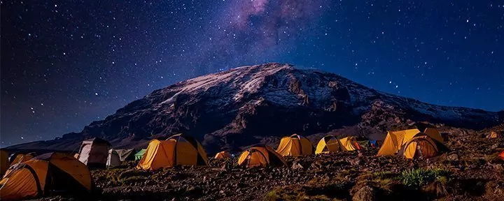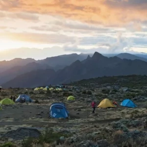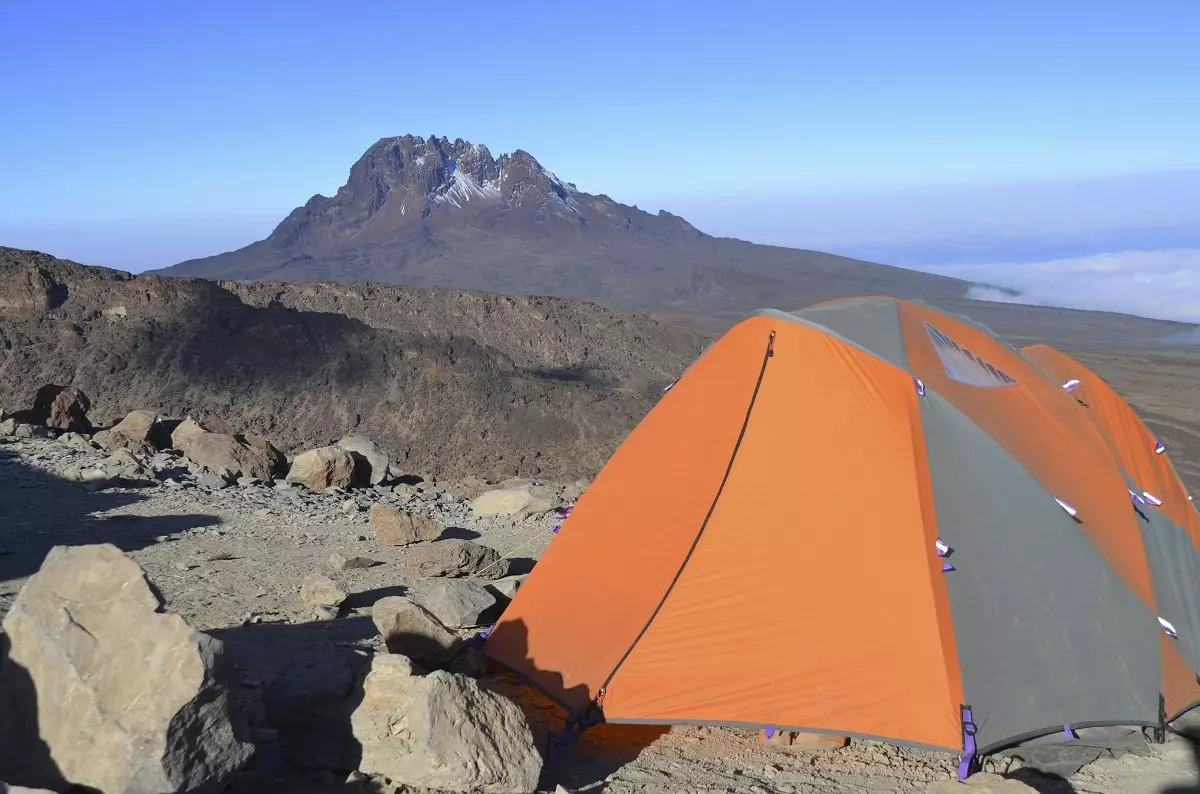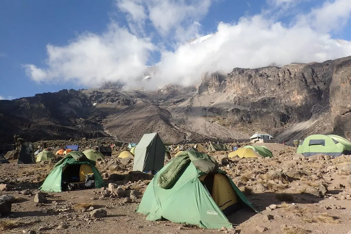 Al overnatning sker i telte, med undtagelse af Marangu ruten, hvor overnatning foregår i primitive sovesalsagtige hytter.