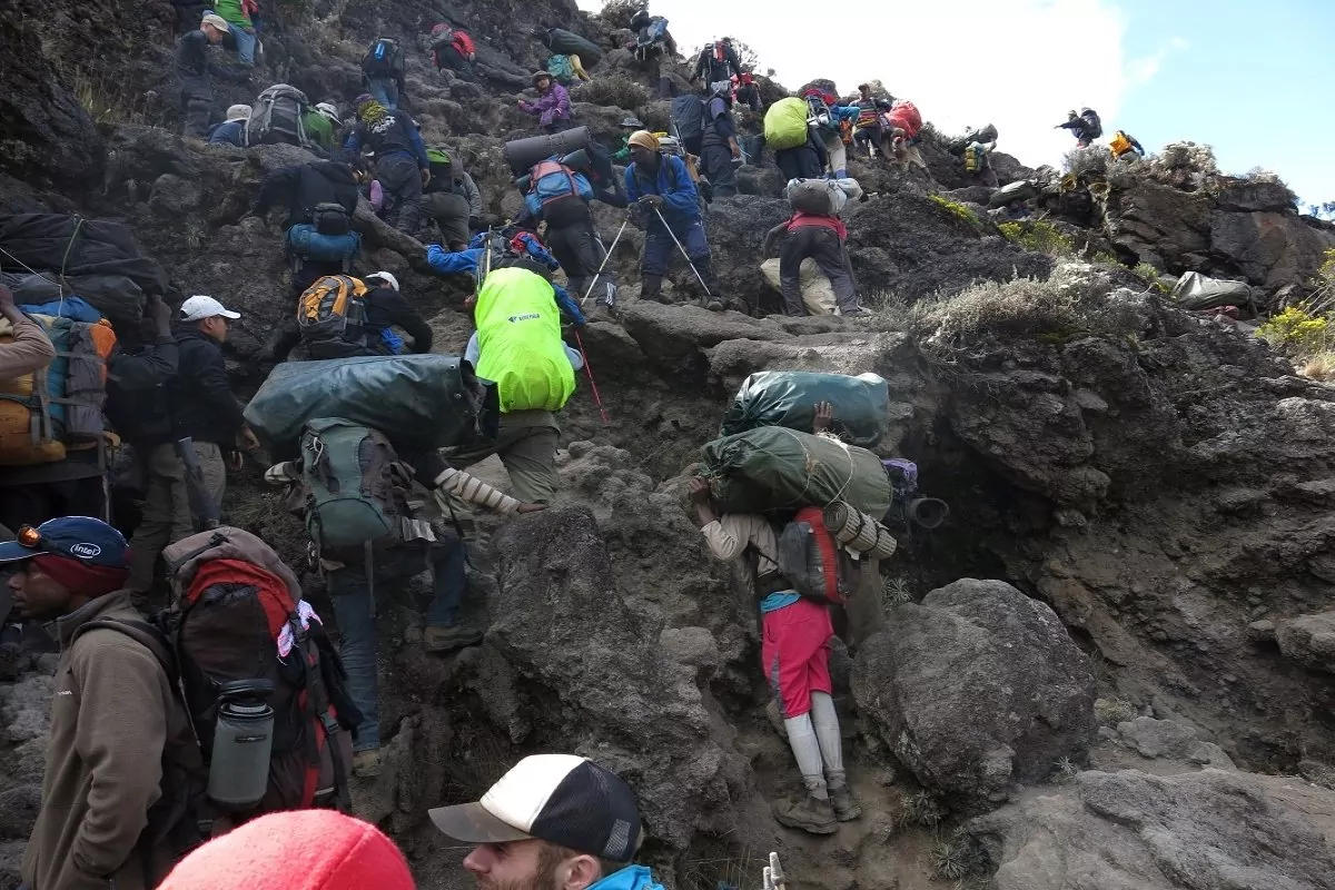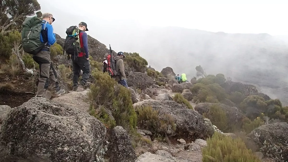 Herefter starter nedstigningen til Barafu Camp, det tager ca. 3 timer. Her får du et velfortjent, men kort hvil, inden du vandrer videre ned ad en stenet sti til Mweka Camp, hvor der venter dig en velfortjent nattesøvn. Lejren ligger i den øverste del af skoven, hvor der ofte er tåge og regn sidst på eftermiddagen. Højdepunktet er, at der her venter varmt vand og varm mad.