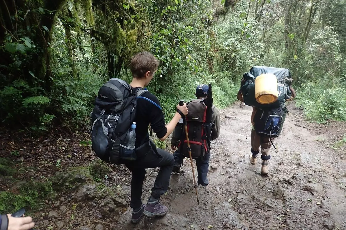 Gennem det første stykke af ruten i de lave højder kan det være vådt og mudret. Du vandrer langs smukke stier gennem den tætte regnskov, hvor du måske er heldig at få et glimt af dyrelivet, fx de meget smukke og meget sjældne sort/hvide colobus aber. Bærerne går i forvejen, så dit telt står klar, når du ankommer til Machame Camp.