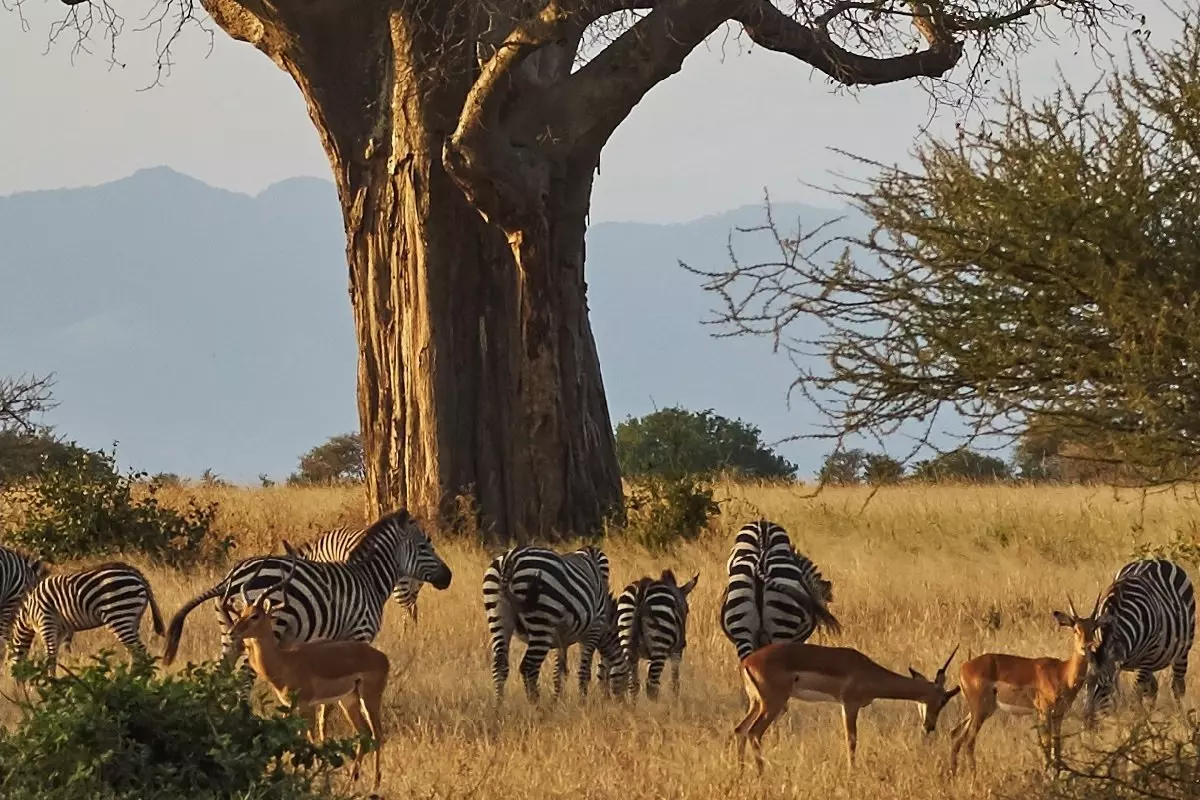 Guiden henter jer på hotellet, og så går turen videre med safari i Tarangire National Park. Tarangire National Park (2.600 km2) med sit enorme panoramalandskab, der favner ni forskellige vækstzoner. I oplever en savanne fyldt med majestætiske baobabtræer og akacier, der næsten tager opmærksomheden fra de mange dyr.
