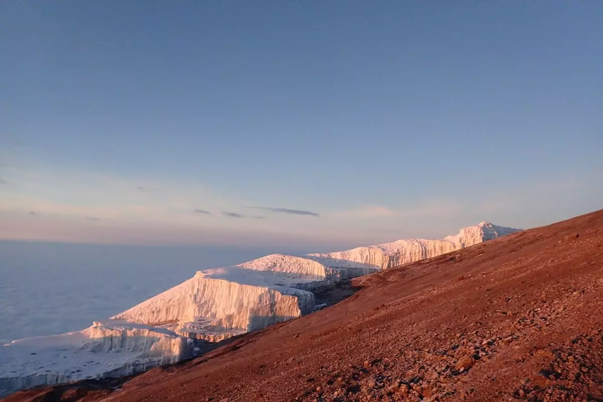 Efter en nat under den imponerende Great Barranco Wall og et solidt morgenmåltid klatrer du op ad den berygtede klippevæg. Noget som heldigvis er lettere end det ser ud til. På toppen under Heim gletsjeren, der hænger som kæmpe is-gardiner ud over massivet, folder Kilimanjaros skønhed sig ud på fantastisk vis.
