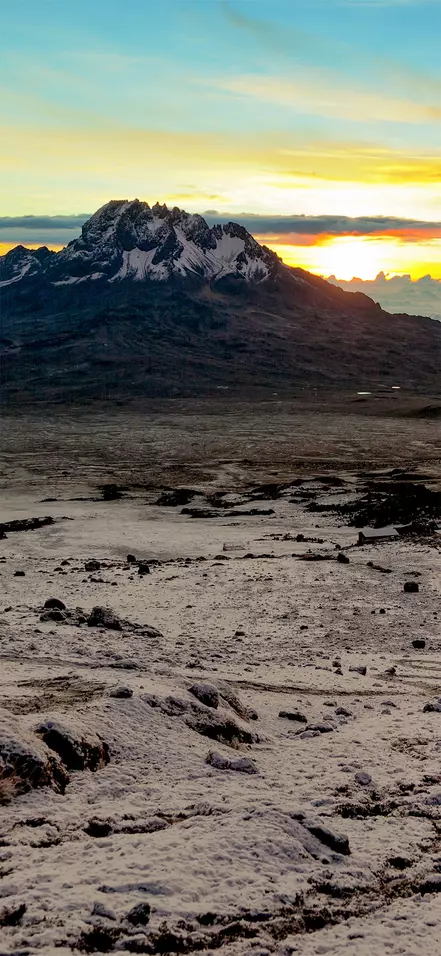 Dagens vandreetape går til Barafu Camp. Du vandrer gennem det dramatiske og spektakulære landskab bestående af store og små vulkansten, som vidner om den tidligere vulkanske aktivitet. På det sidste stykke til Barafu Camp følger du Mweke ruten. Undervej der er udsigt til Kibo og Mawenzi.