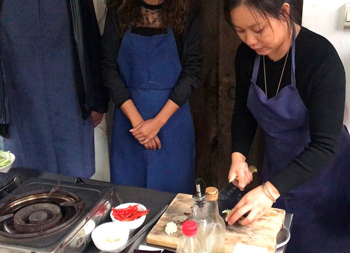 Du får en kort introduktion til kinesisk madlavning med alt fra krydderier til udskæring af kød og grøntsager. Det hele foregår i en hyggelig og hjælpsom atmosfære.