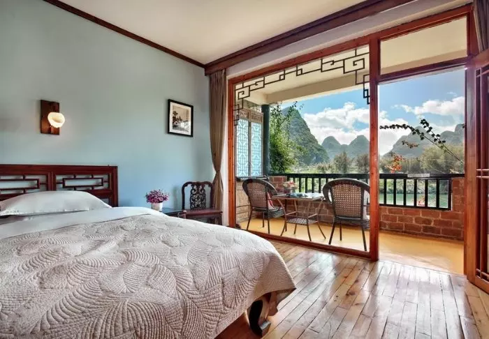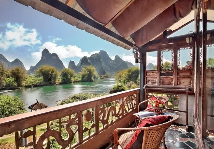 Lidt uden for Yangshuo finder du det fredfyldte Yangshuo Mountain Retreat i betagende omgivelser blandt frodige træer og grønne kalkstensbjerge ved Yulong-flodens bred. Her kan du virkelig finde din indre ro, mens du suger den pragtfulde natur til dig.
