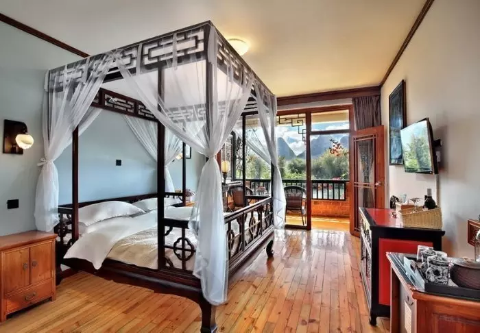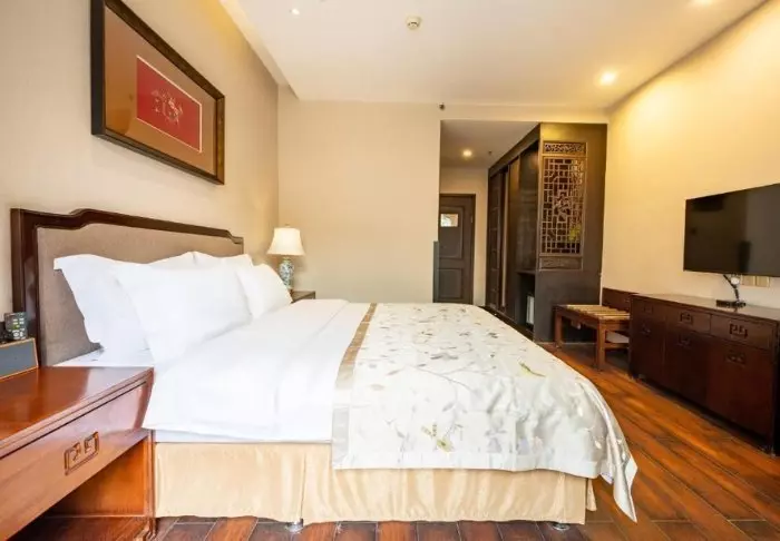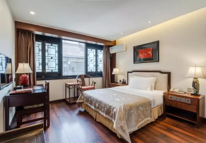 De stilfulde værelser er indrettet med traditionelle kinesiske senge og beroligende farver på væggene. På hvert værelse er der aircondition, minibar, værdiskab, wi-fi og privat badeværelse, men her er hverken tv eller telefon, for at du bedre kan nyde de skønne, afslappende omgivelser.