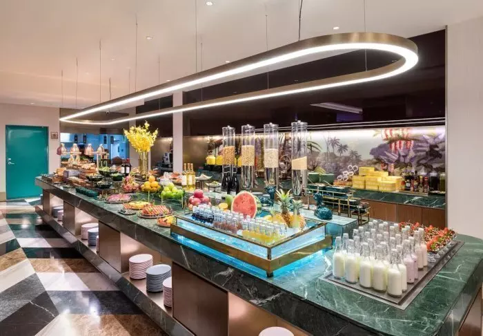 I hotellets morgenmadsrestaurant venter der dig hver dag et stort og lækkert udvalg af både vestlig- og kinesisk inspireret mad i den store morgenmadsbuffet.