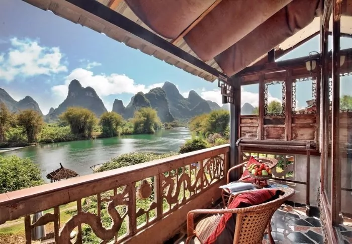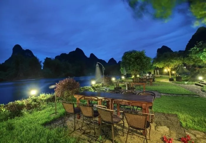 Lidt uden for Yangshuo finder du det fredfyldte Yangshuo Mountain Retreat i betagende omgivelser blandt frodige træer og grønne kalkstensbjerge ved Yulong-flodens bred. Her kan du virkelig finde din indre ro, mens du suger den pragtfulde natur til dig.