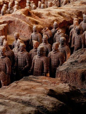 Terrakottahæren består af tusindvis af mandsstore soldater, der er opstillet i kampposition, og hundredvis af kampvogne og heste. Man mener, at Kinas første kejser lod denne hær opføre for at beskytte sin grav. En af de enestående ting ved disse lerfigurer er, at hver eneste figur er unik, og deres tøj og redskaber giver en fantastisk indsigt i livet for mere end 2000 år siden.