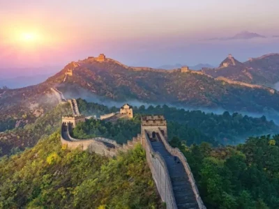 Nord for Beijing, spredt over en strækning fra Det Gule Hav i øst, over bjergrygge til den endeløse Gobi-ørken i vest ligger den Kinesisk Mur.