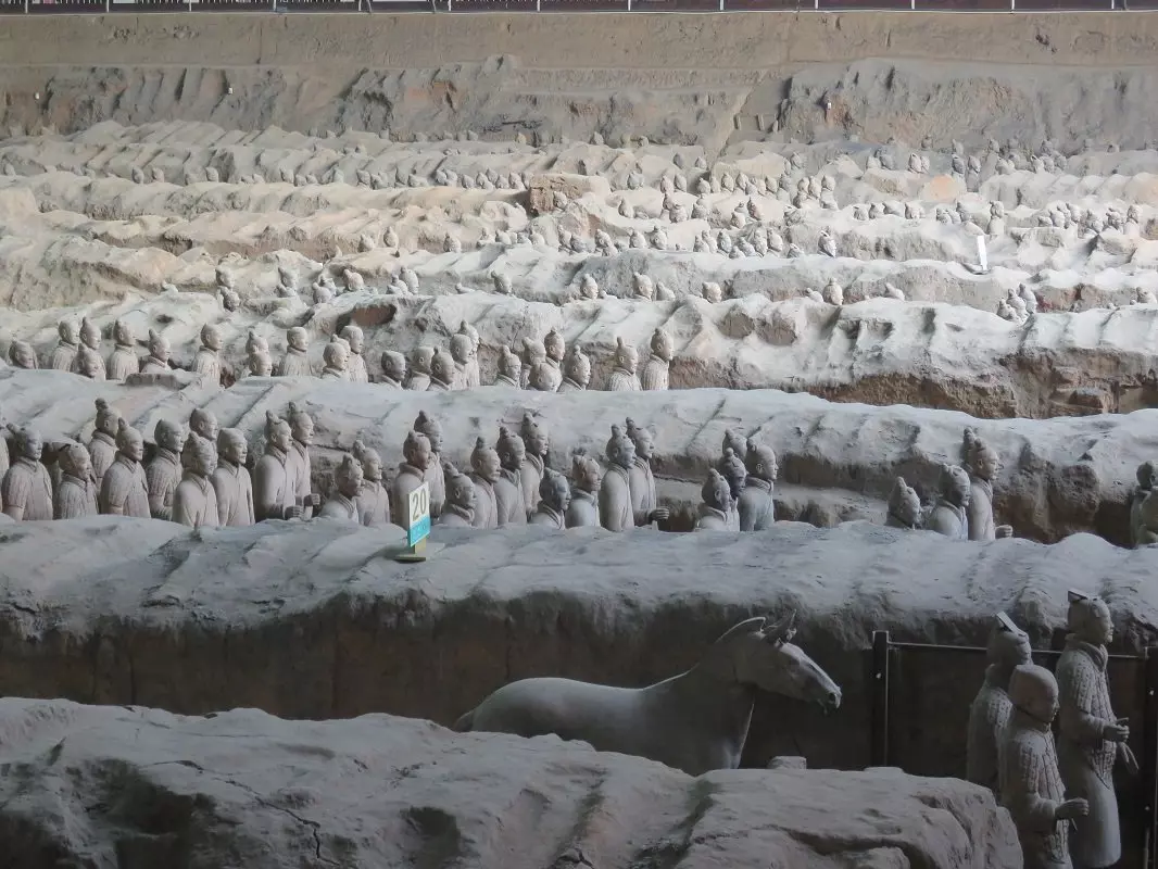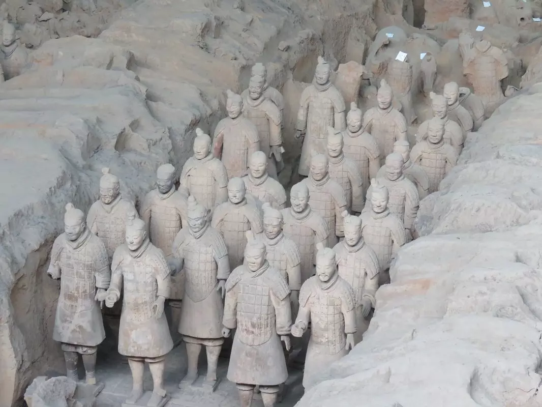 Du bliver hentet på hotellet og kørt til et af rejsens absolutte højdepunkter, Terrakottahæren. 1974 var året, hvor kinesiske bønder fandt fragmenter af en skulptur i menneskestørrelse, lige uden for Xi’an. Arkæologer blev tilkaldt og fortsatte udgravningerne, som resulterede i det største fund af underjordiske skulpturer, verden nogensinde har set. De opdagede over 7.000 terrakottakrigere, heste og vogne. Krigerne er mellem 175 og 190 cm høje og ser alle forskellige ud; forskellige ansigter, forskellige frisurer og forskellige dragter. De er alle opstillet på række klar til kamp nær kejser Qin Shi Huangs gravsted. Det siges, at krigerne blev bygget til at beskytte deres hersker i efterlivet.