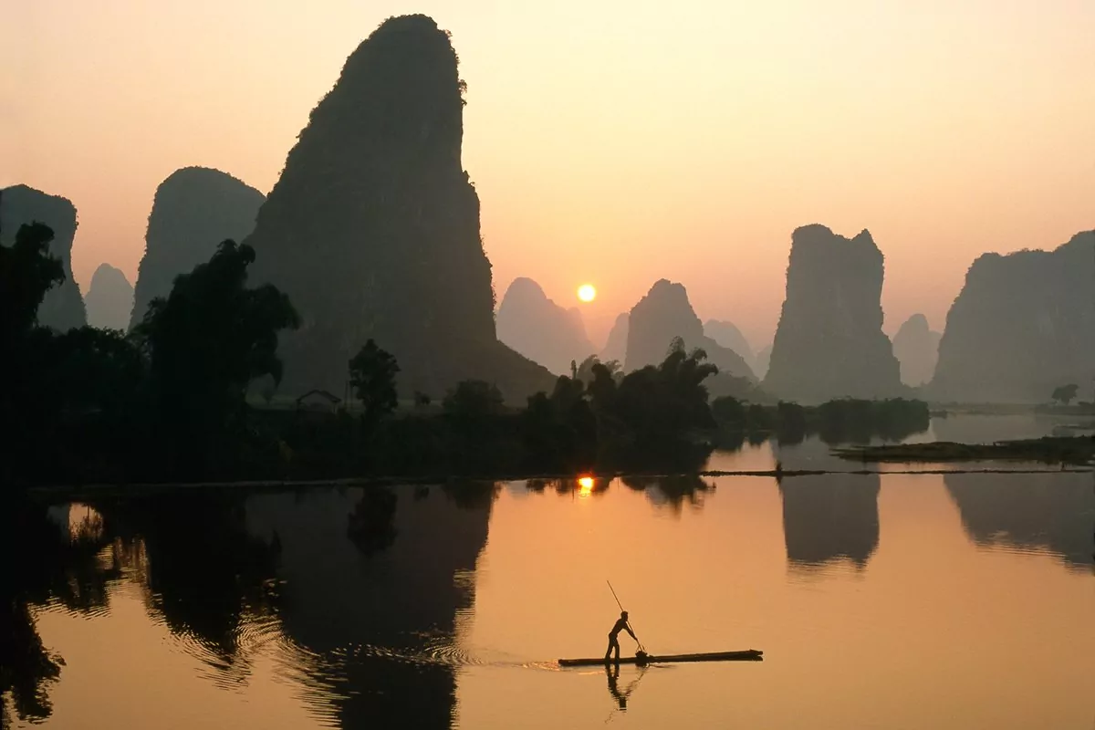 Jo længere mod syd og vest du kommer, jo friskere bliver luften. Det kan især mærkes i Yangshuo, hvor du fortrylles af de poetiske og betagende landskaber. Her står høje, asymmetriske kalkstensbjerge, der spejles ned i de rolige floder, Li og Yalong. Så enestående et landskab, at det er foreviget på 20-yuan pengesedlen.
