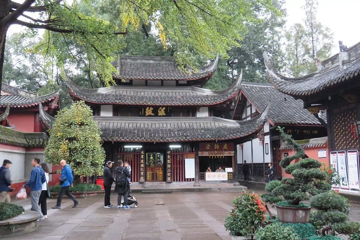 Turen går herefter til Wenshu-templet. Templet har en spændende historie, der går mere end 1.000 år tilbage, og så har det været med til at sprede buddhismen i Chengdu. Wenshu, som tidligere hed Xinxiang, blev ødelagt af krigsflammerne i slutningen af Ming-dynastiet, og stedet lå i ruiner, indtil en buddhistisk munk, under Qing-dynastiet i 1681, kom og byggede en lille hytte mellem to træer, hvor han kunne bo og udføre sine religiøse ritualer. Munkens navn var Cidu, og han boede flere år i hytten og levede et asketisk liv indtil sin død. Fortællingen lyder, at da munk Cidu døde, blev han kremeret, og da røgen steg op, dannede den billedet af Wenshu, som er det kinesiske navn for visdommens bodhisattva Manjushri. Folk betragtede derfor Cidu som reinkarnationen af Wenshu. Renoveringen og genopbygningen af templet begyndte i 1697 og stod færdigt i 1706, hvor man gav templet sit nuværende navn. Wenshu-templet er i dag et af de smukkeste og bedst bevarede buddhistiske templer i Kina, og så er det hjem for 80 munke.