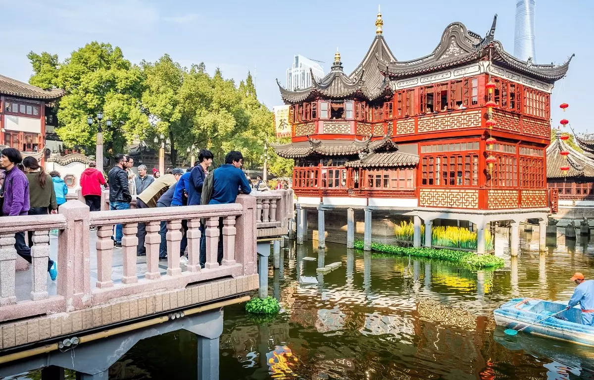 Fra Shanghai Old Street fortsætter turen til Jiuqu-broen, også kendt som De Ni Svings Bro, der snor sig over en lille sø med karper. Her står Shanghais ældste tehus, Huxinting, fra år 1855. Jiuqu-broen fører dig videre til indgangen til Yuyuan-haven, der er Shanghais fineste have.