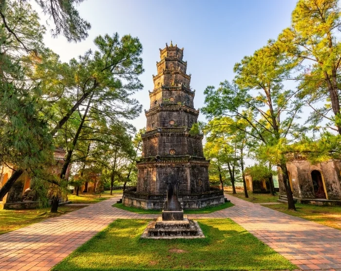Næste besøg er Thien Mu-pagoden, som er Hués ældste og mest ikoniske religiøse vartegn. Pagoden ligger højt hævet med udsigt over Parfume-floden og har i mere end 400 år været et vigtigt centrum for buddhismen i det centrale Vietnam. Det ottekantede pagodetårn rejser sig majestætisk mod himlen og danner en fredfyldt ramme om templet og det munkesamfund, der stadig lever og praktiserer her.
