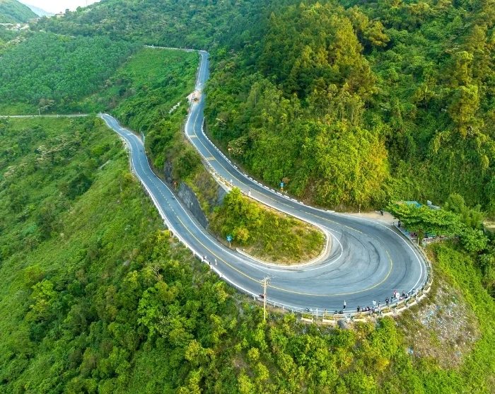 Ruten følger til tider kysten og snor sig op gennem Truong Son-bjergene, hvor du krydser det spektakulære Hai Van Pas, også kendt som “passet i skyerne”. Herfra er udsigten intet mindre end betagende med grønklædte bjerge på den ene side og Det Sydkinesiske Havs blå horisont på den anden.