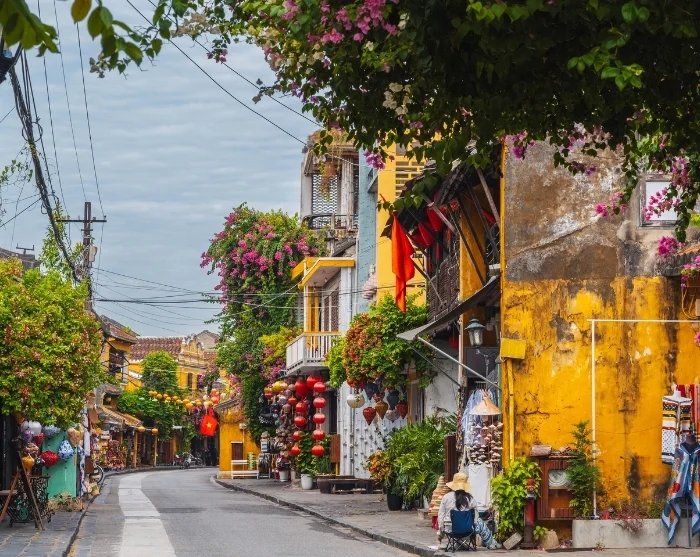 Væk fra floden breder en labyrint af små stemningsfulde gader sig. Her mødes du af et farverigt miks af japanske træhuse, kinesiske forsamlingshuse, franske kolonitidsbygninger og de karakteristiske købmandshuse. Farverige lanterner hænger som guirlander over gaderne og skaber en særlig stemning, især når mørket falder på. Butikker, gadekøkkener, caféer og små restauranter ligger som perler på en snor og indbyder til afslappede stunder og nysgerrige opdagelser.