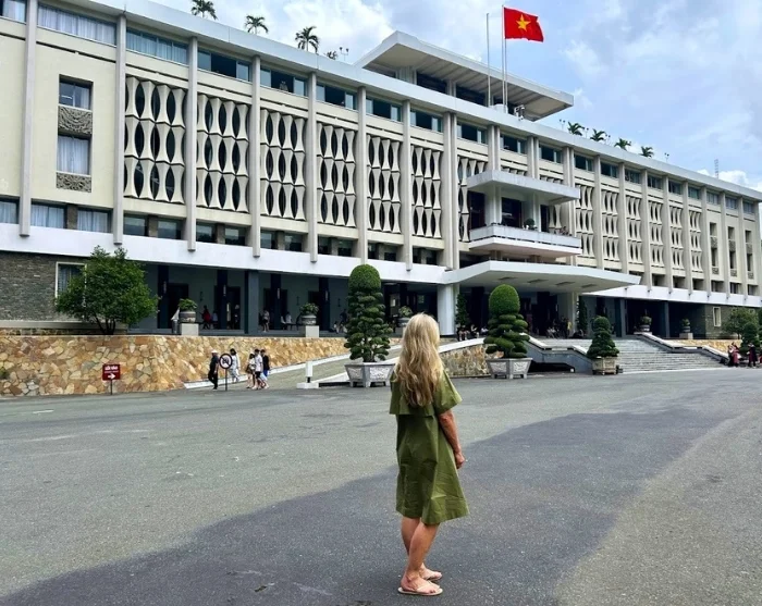 Når du står front mod kirken, har du en grå bygning i ryggen. Nogle vil måske genkende den som “Pittman Apartments” på 22 Gia Long Street fra det berømte billede taget den 29. april 1975 af den hollandske fotograf Hubert van Es i forbindelse med Saigons fald. Det var her, en helikopter landede på taget – en scene, som mange fejlagtigt troede fandt sted ved den amerikanske ambassade. Din guide fortæller den dramatiske historie om evakueringen og den skjulte rolle, bygningen spillede i krigens sidste timer.