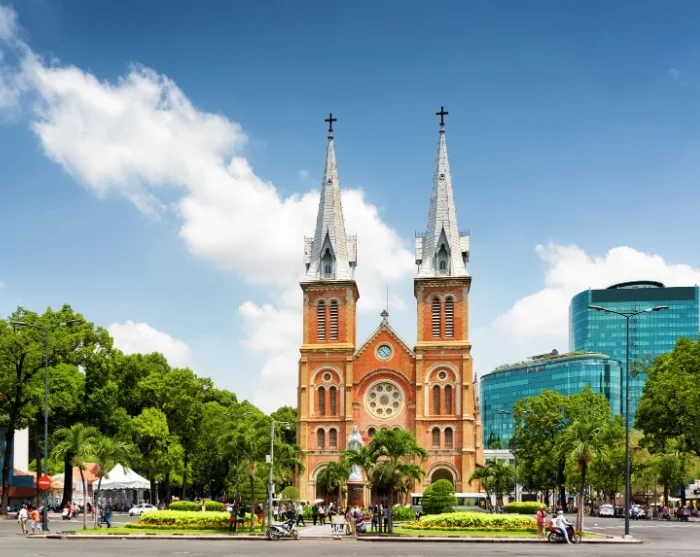 Lige over for det Gamle Posthus ligger den ikoniske Notre Dame-katedral, opført mellem 1863 og 1880. Katedralen er et imponerende levn fra den franske kolonitid med sine karakteristiske røde mursten og tårnhøje spir.