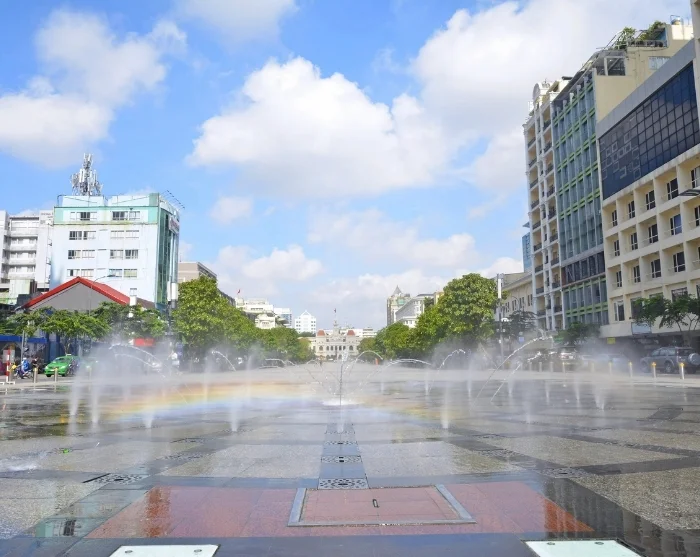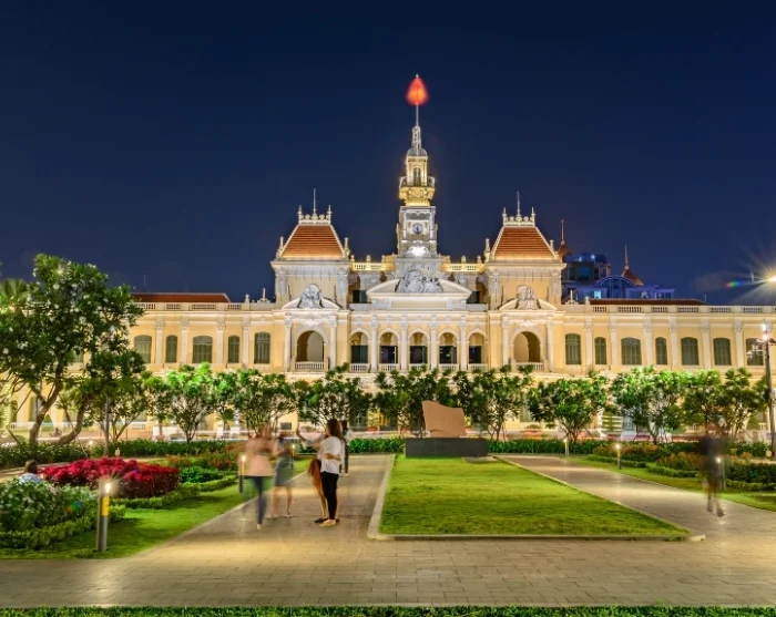 Omkring skumring kan du slentre en tur ned ad Nguyen Hue-promenaden, som er omgivet af blomster, springvand og stemningsfuld arkitektur. Her kan du opleve det særlige byliv, når lokale samles med gadekunstnere, dansere og unge familier i et charmerende virvar. Atmosfæren er afslappet og livlig, og det hele kulminerer omkring det oplyste rådhus.