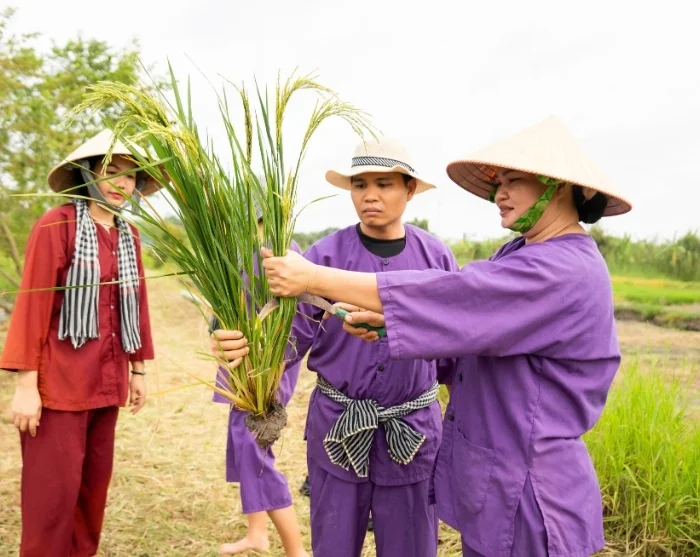 Du fortsætter til vores sociale bæredygtighedsprojekt i Vinh Long, som er startet af vores lokale samarbejdspartner. Her venter en rolig gåtur gennem landsbyen, hvor din guide undervejs giver dig indblik i projektet. Du får også mulighed for at tage del i det traditionelle landbrugsliv. Sammen med lokale bønder prøver du kræfter med risdyrkning, enten ved at plante de spæde risplanter eller ved at hjælpe til med høsten, alt efter sæsonen. Det er en lærerig og jordnær oplevelse, der giver dig et unikt indblik i hverdagen i Vietnams landdistrikter og i det arbejde, der ligger bag et bæredygtigt landbrug. Når du deltager på turen, er du samtidig med til at gøre en forskel for familierne i Vinh Long, da en procentdel af rejsens pris går direkte til projektet, som du kan lære mere om her.