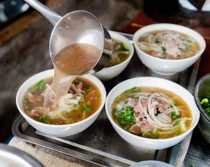 Til frokost kan du gå på jagt efter Hanois berømte streetfood. Prøv en dampende skål pho, nyd duften af grillede bun cha eller tag en sprød banh mi med på farten.